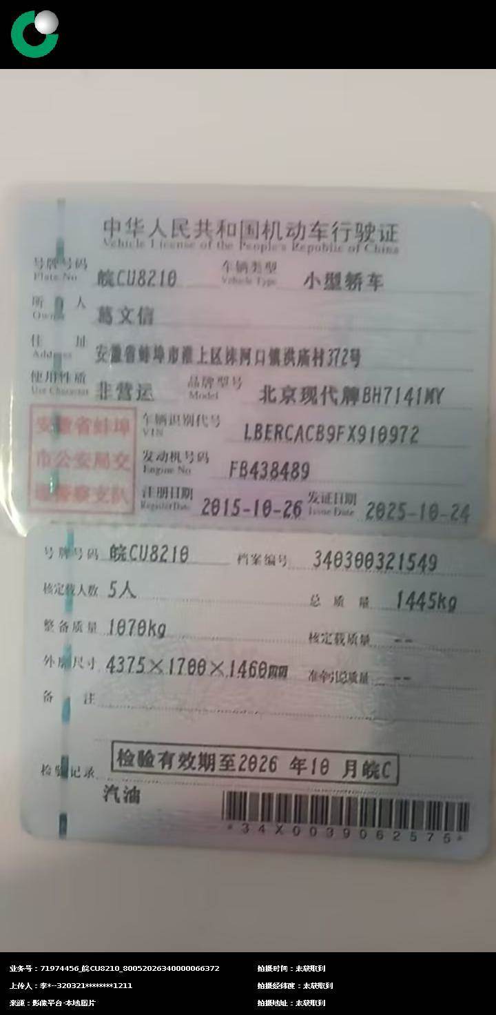 车辆归属地 安徽省蚌埠 车辆停放仓库 安徽省蚌埠市淮上区