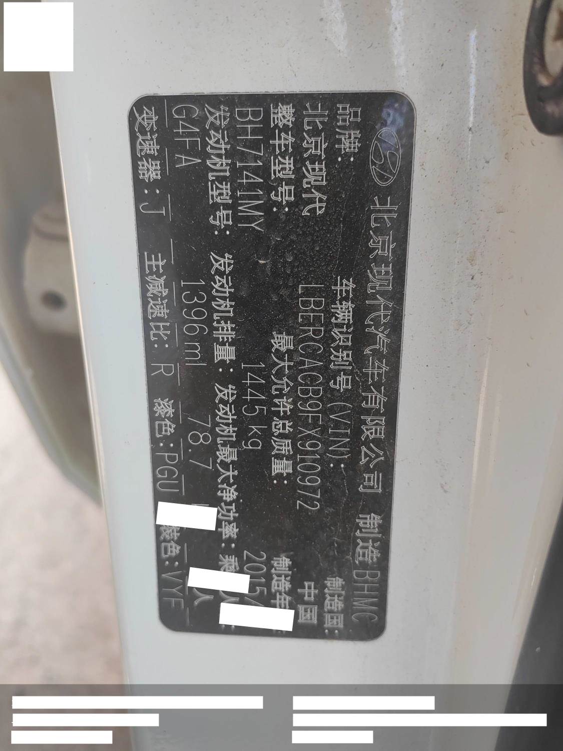 初次登记日期 2015-10-26 车辆名称 现代 瑞纳