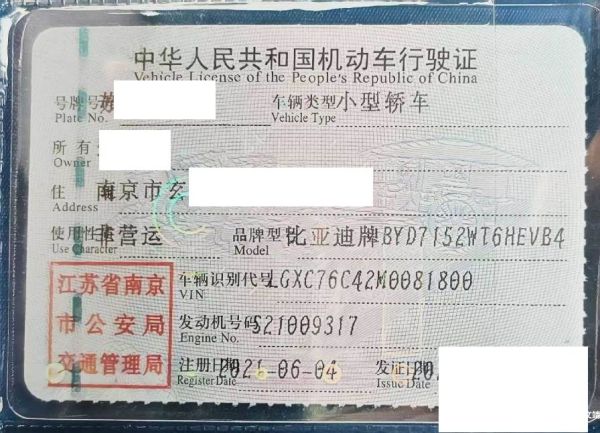 初次登记日期 2021-06-04 车辆名称 比亚迪