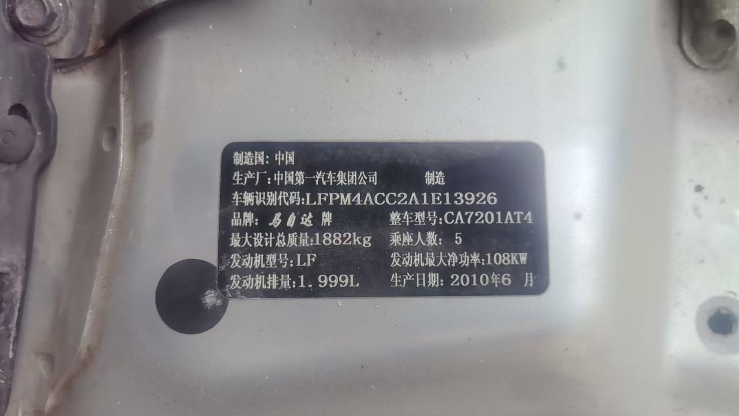 初次登记日期 2010-07-01 车辆名称 马自达6
