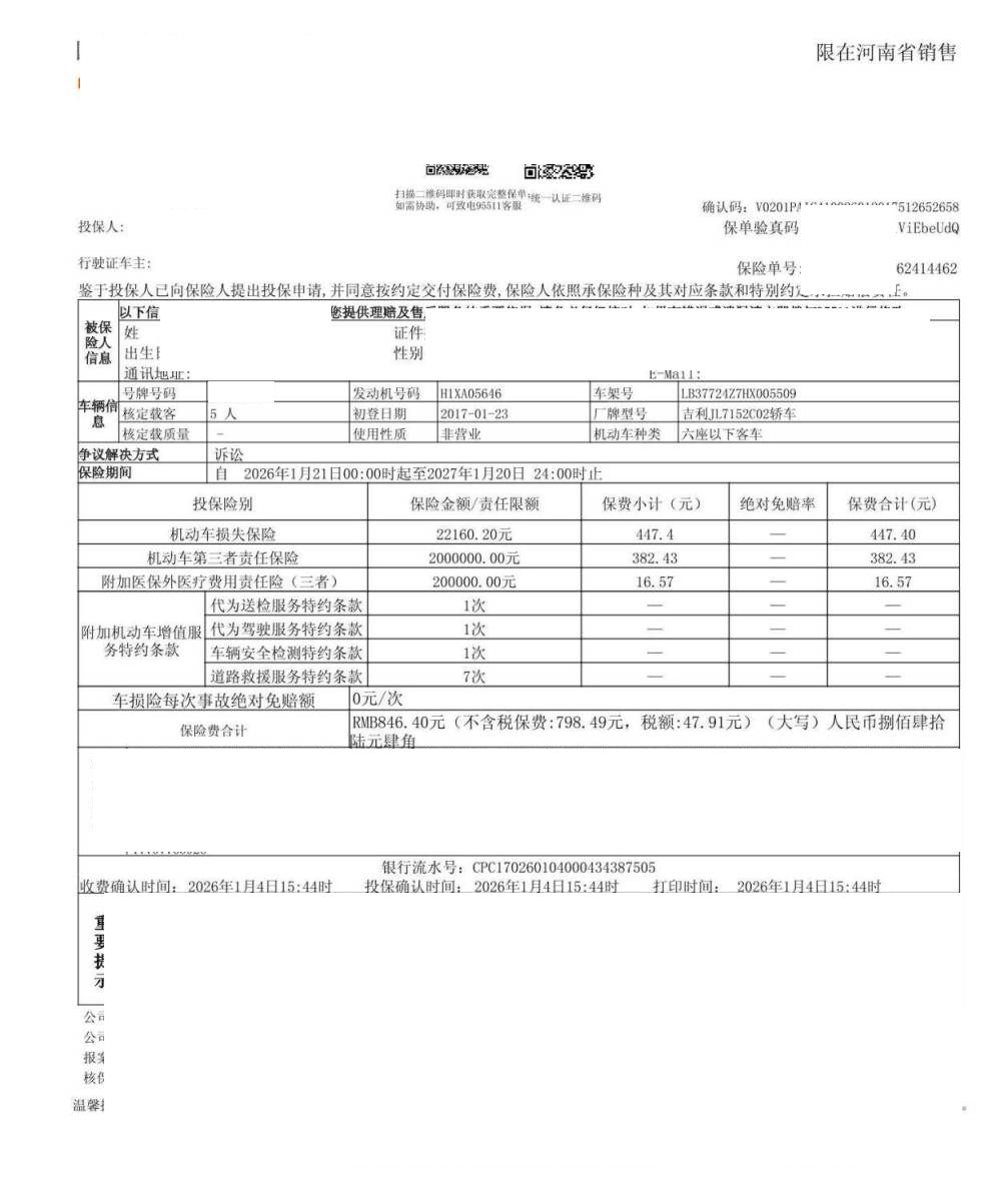 车牌号 豫****** 品牌 吉利