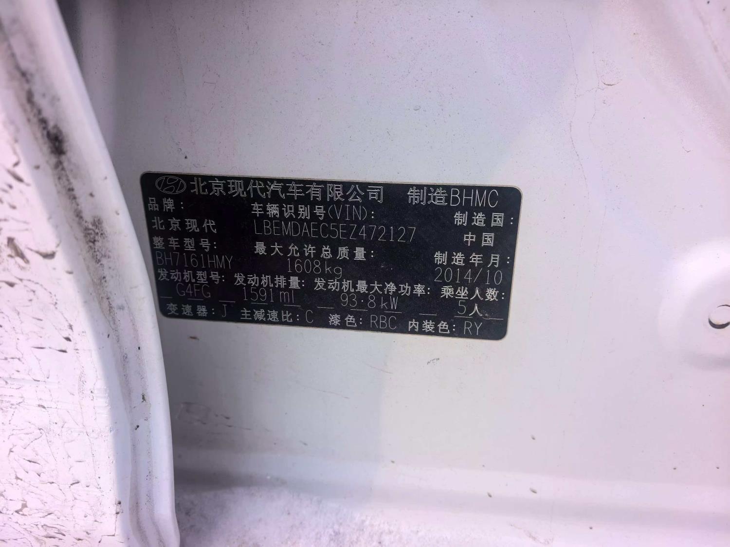 底盘号码 LBEMDAEC5EZ472127 变速箱类型 手动