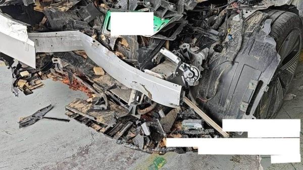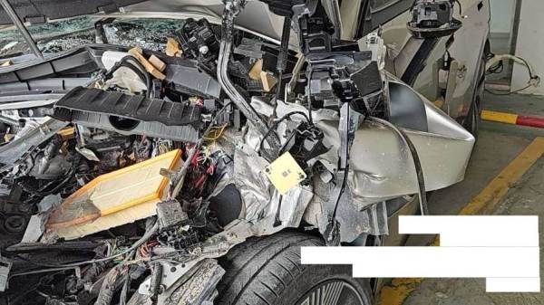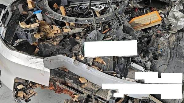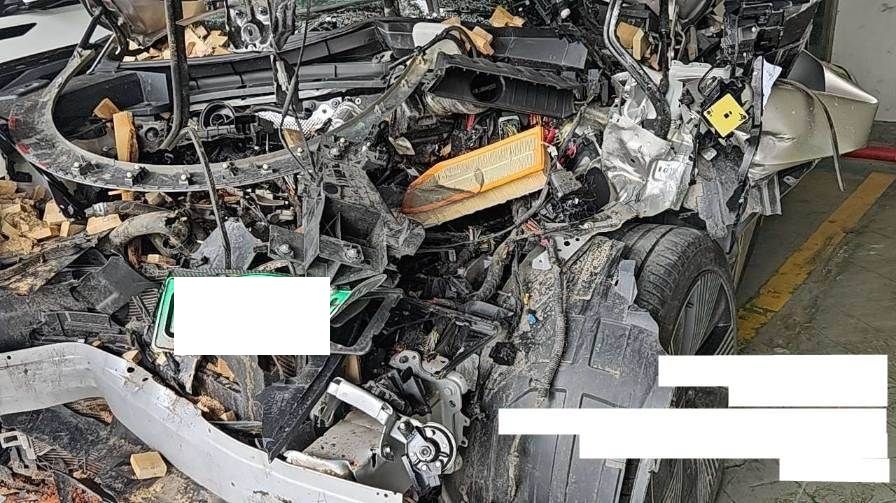 前部受损严重,气囊已弹出
