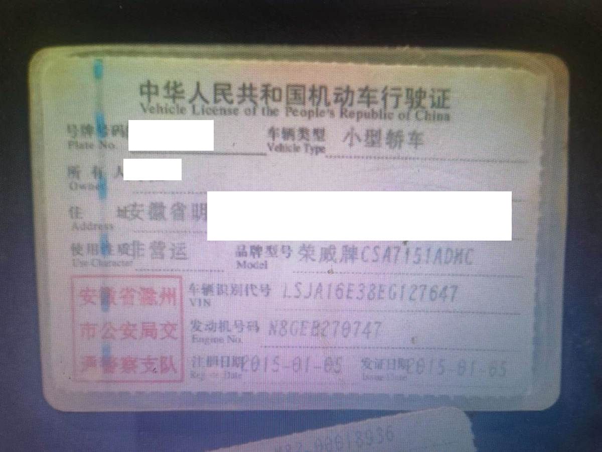 初次登记日期 2015-01-05 车辆名称 荣威牌
