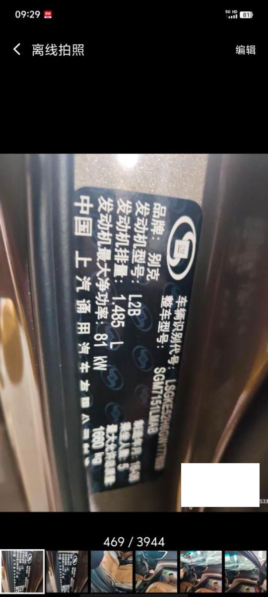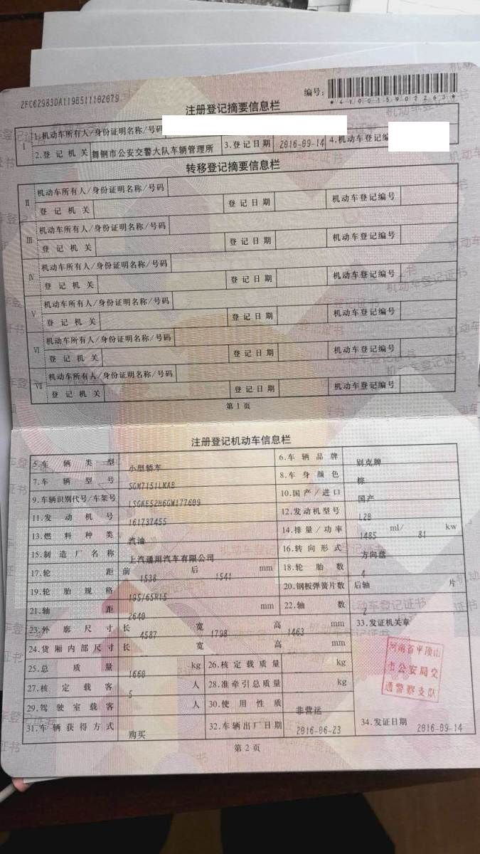 初次登记日期 2016-09-14 车辆名称 别克 英朗