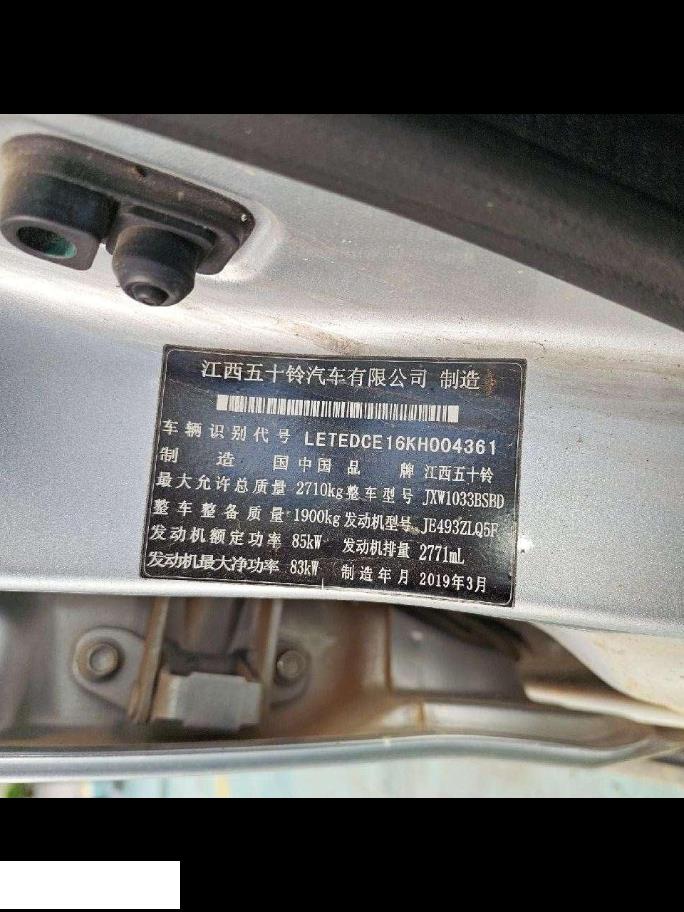 初次登记日期 2019-07-16 车辆名称 五十铃 RE-MAX 瑞迈