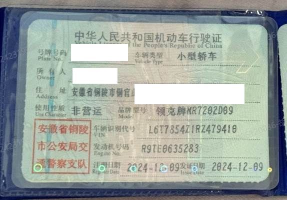 车辆归属地 安徽省铜陵市 车辆停放仓库 安徽省铜陵市铜官山区
