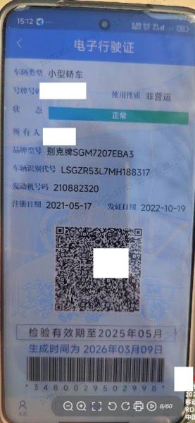初次登记日期 2021-05-17 车辆名称 别克 君威