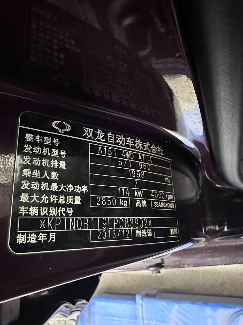 底盘号码 KPTN0B1T9EP083902 变速箱类型 手自一体