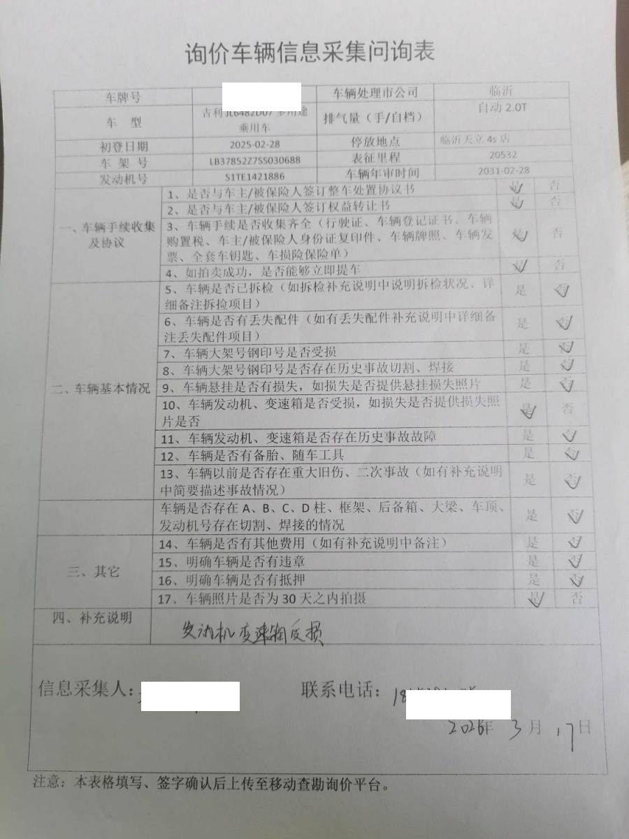 车牌号 鲁****** 品牌 吉利
