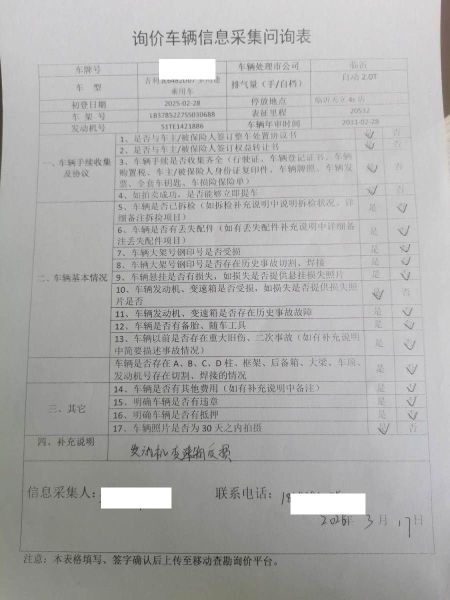 车架号是否受损 使用性质 非营运