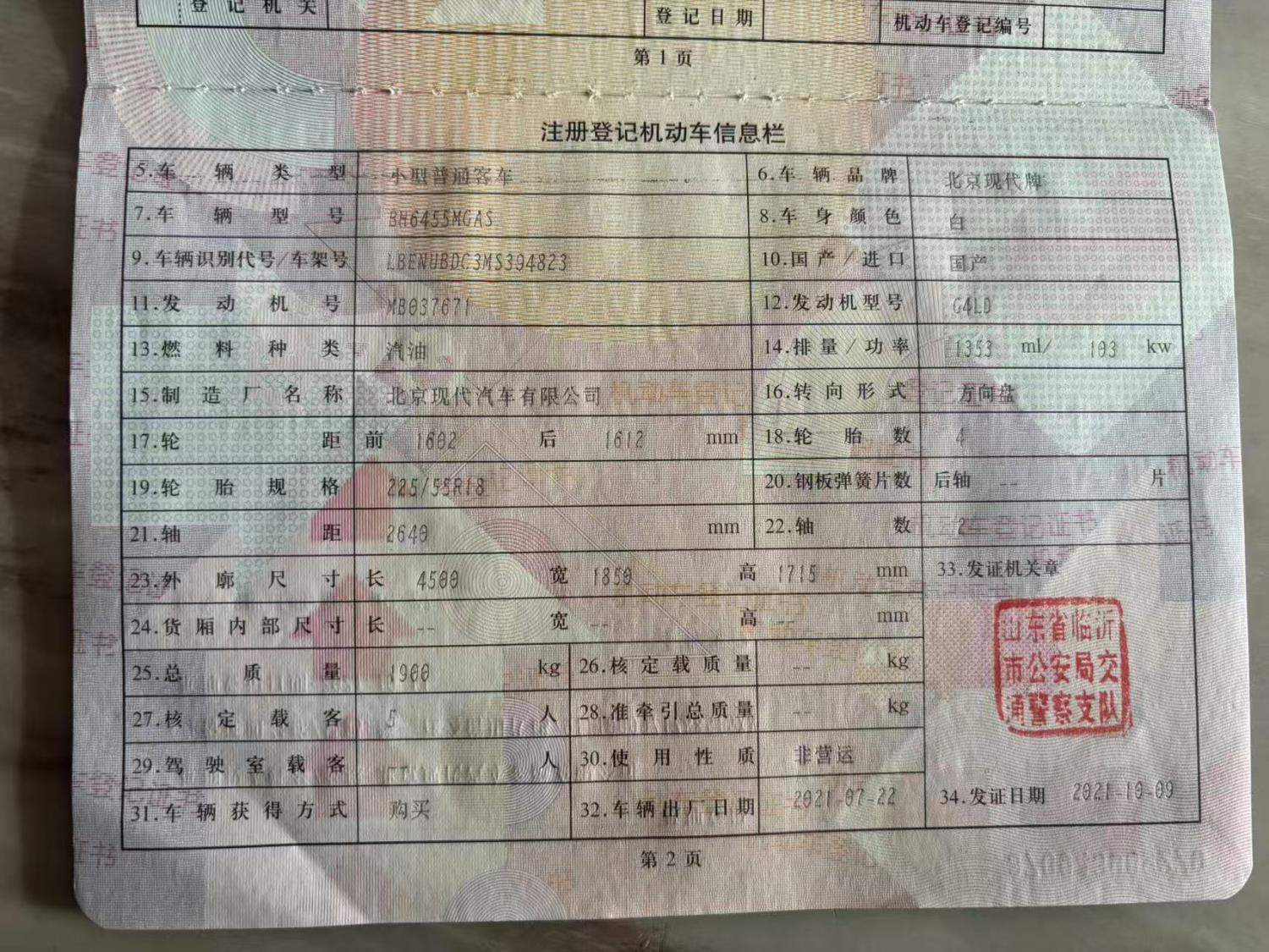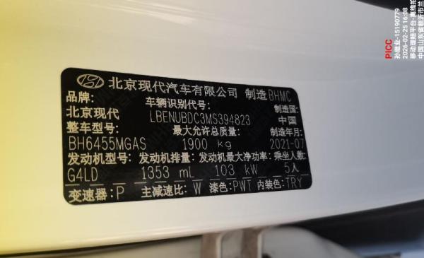 初次登记日期 2021-07-22 车辆名称 北京现代ix35