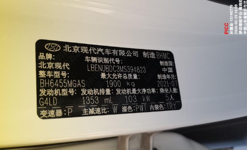 车牌号 鲁****** 品牌 现代