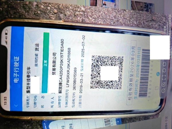 初次登记日期 2019-03-21 车辆名称 解放 解放JH6(P26)