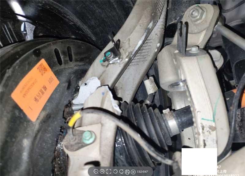 高速碰撞护栏,车头及左侧,左前悬架及后部悬架损坏。前部部分配件现场丢失。 二手车交易费发票金额低于拍卖成交金额开具(不含手续费及其他费用) 。