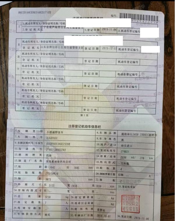 初次登记日期 2019-11-06 车辆名称 奔驰GL级