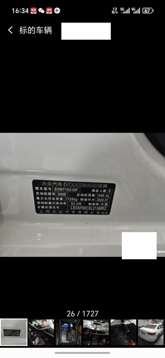 初次登记日期 2020-07-29 车辆名称 大众 朗逸