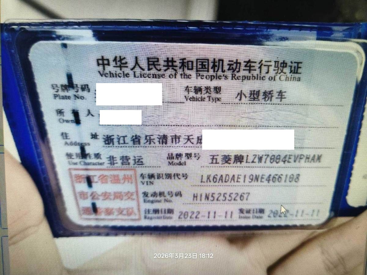 车牌号 浙****** 品牌 五菱