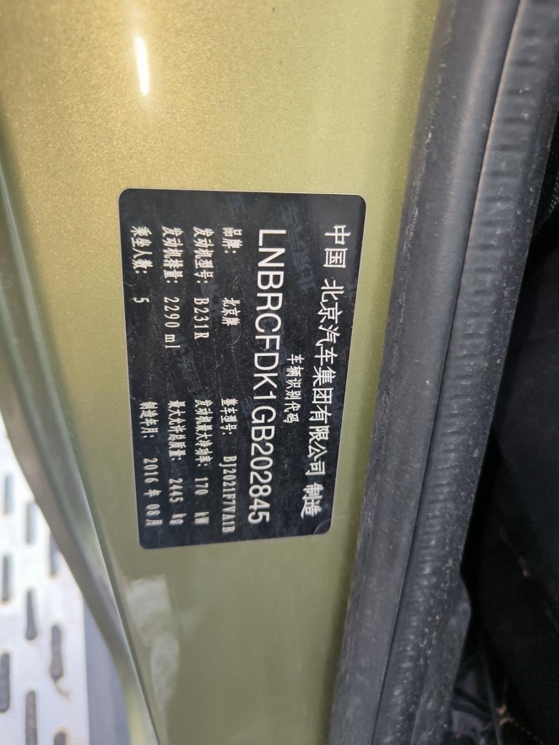 初次登记日期 2016-09-23 车辆名称 北京越野BJ40