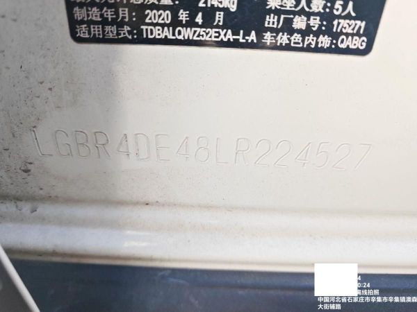 底盘号码 LGBR4DE48LR224527 变速箱类型 自动