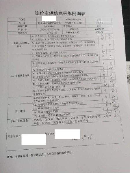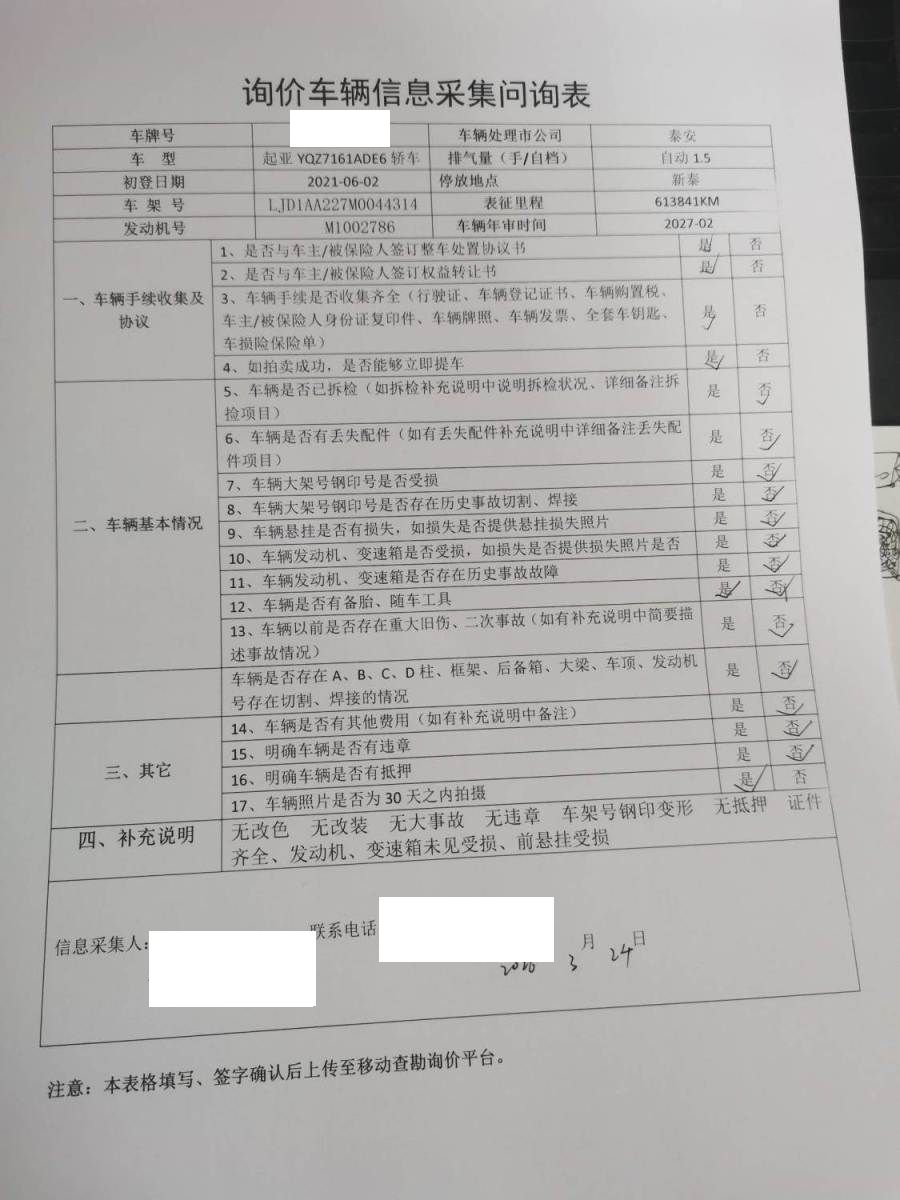车架号是否受损 未知 使用性质 非营运