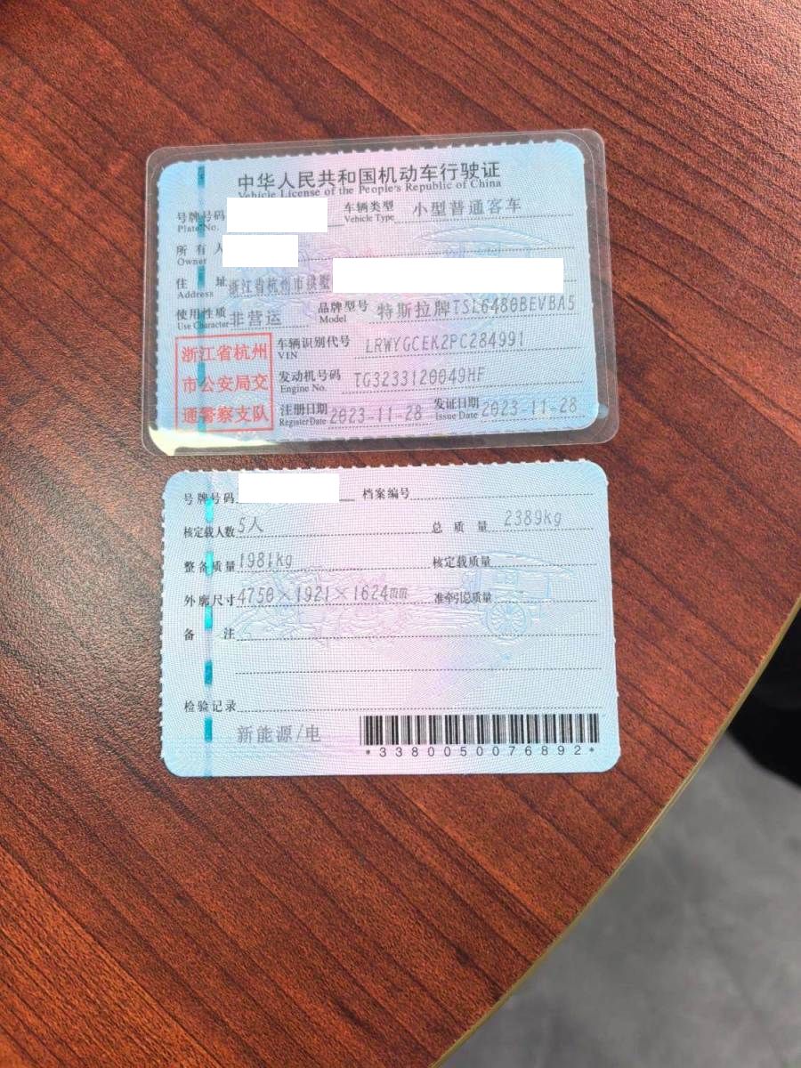 车牌号 浙****** 品牌 特斯拉