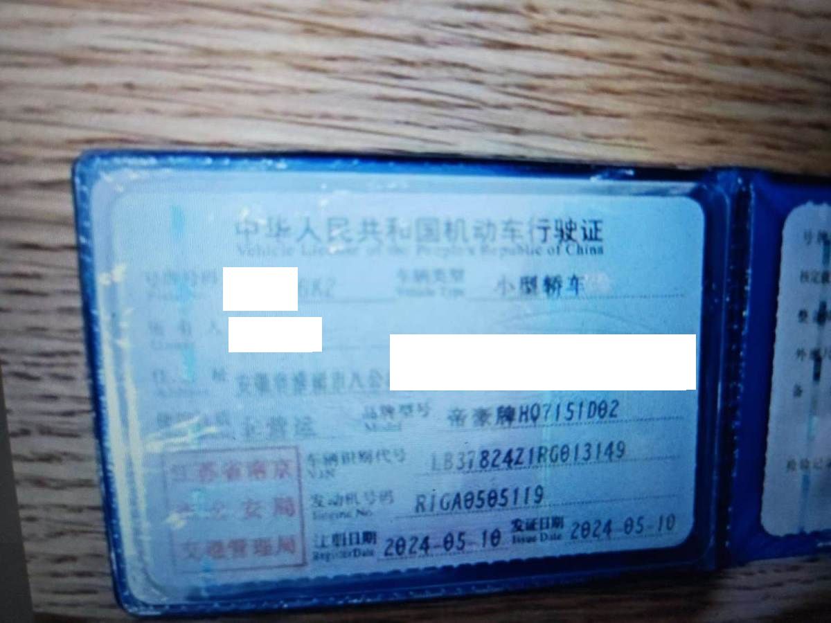 初次登记日期 2024-05-10 车辆名称 吉利汽车 帝豪