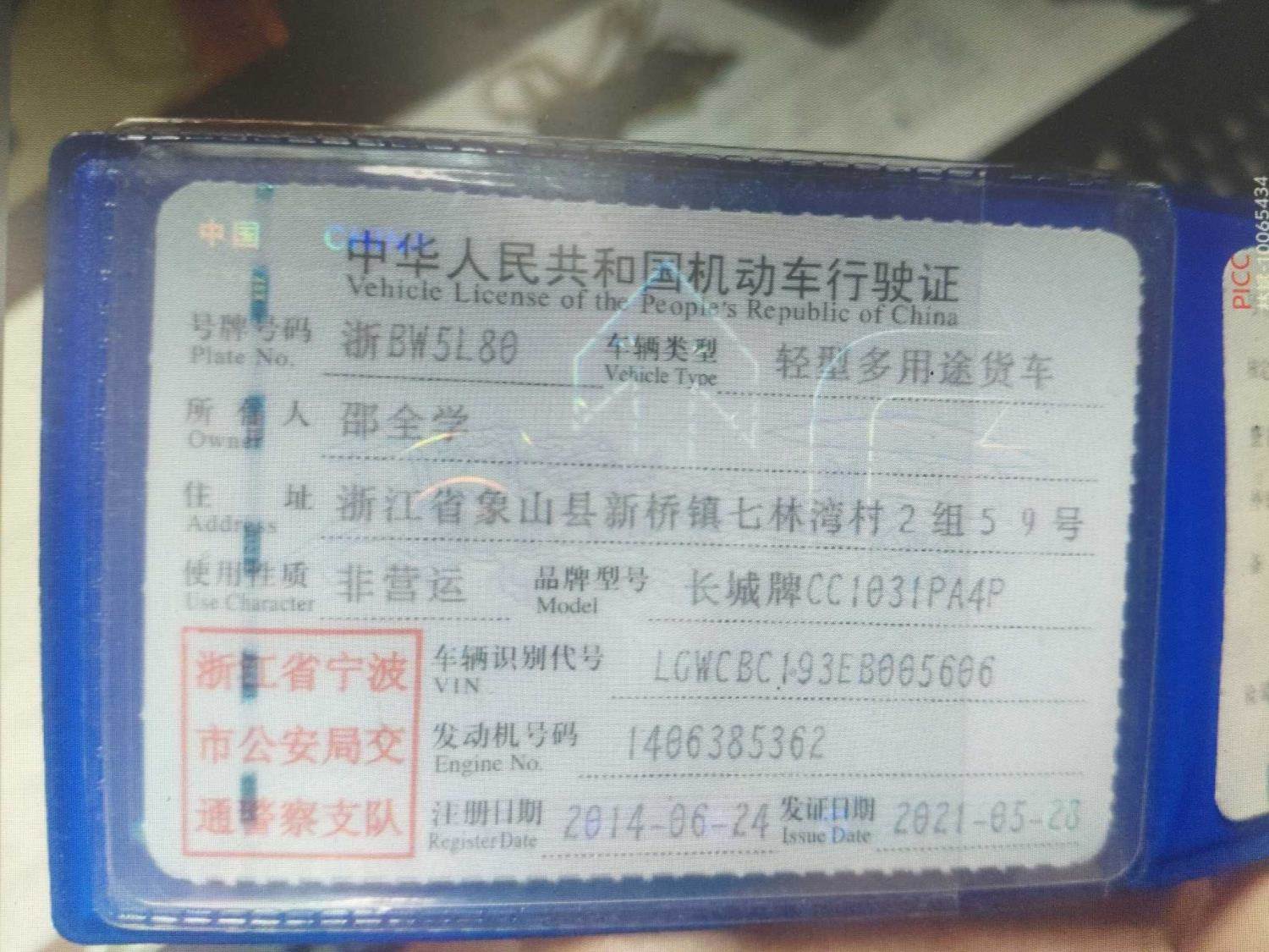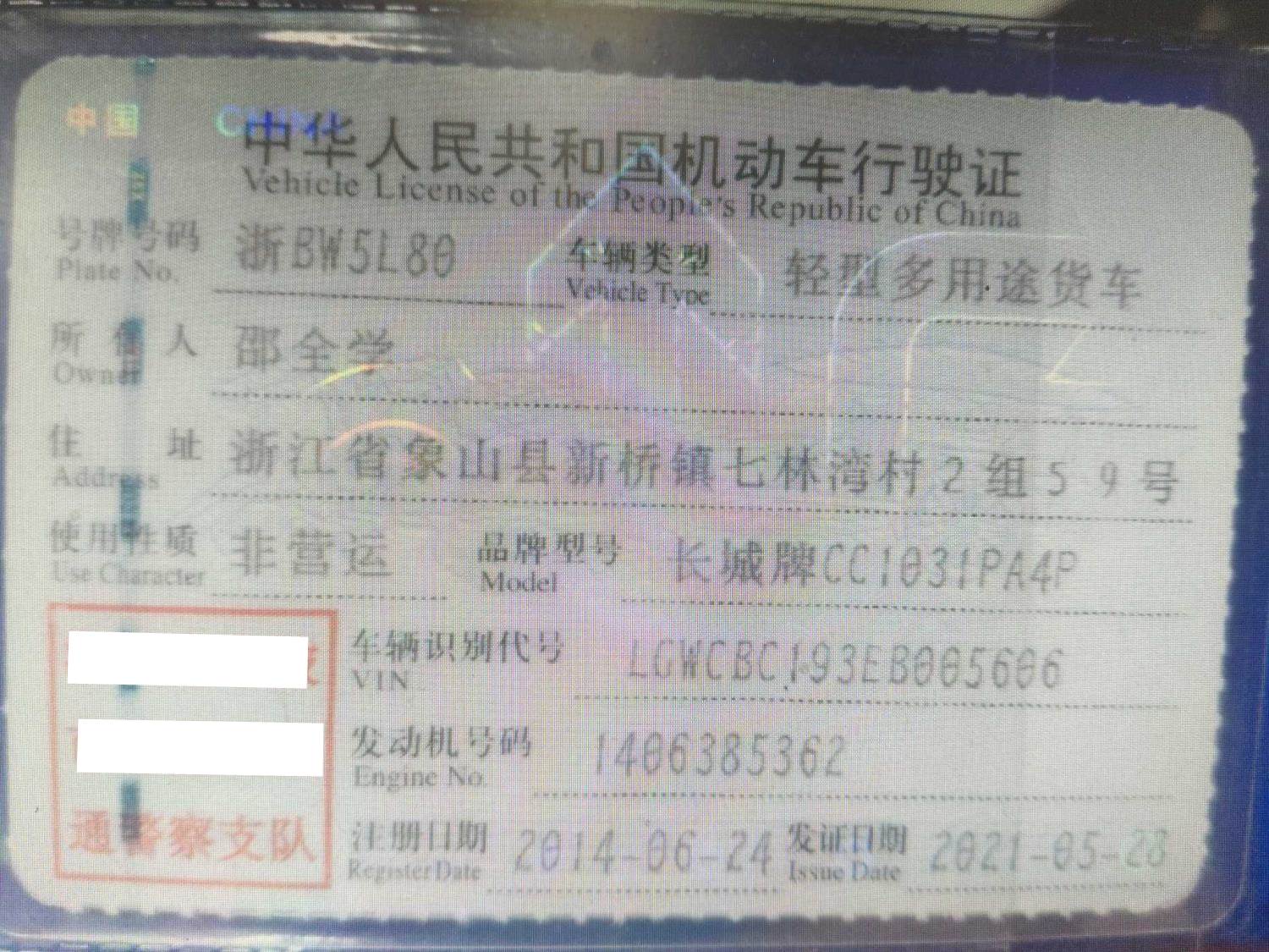 车牌号 浙****** 品牌 长城
