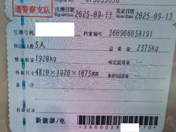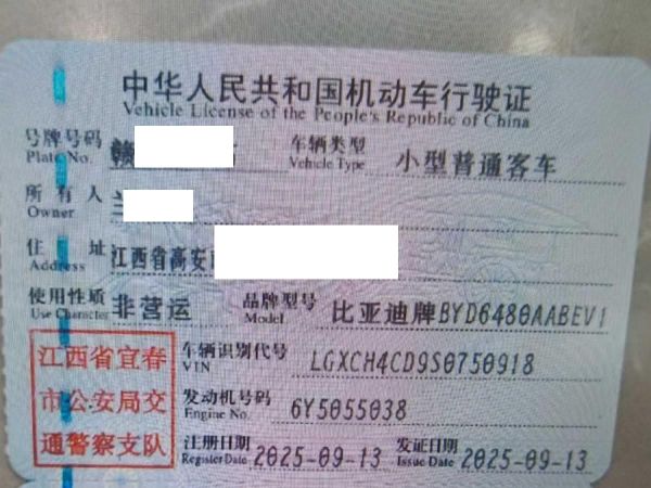 初次登记日期 2025-09-13 车辆名称 比亚迪