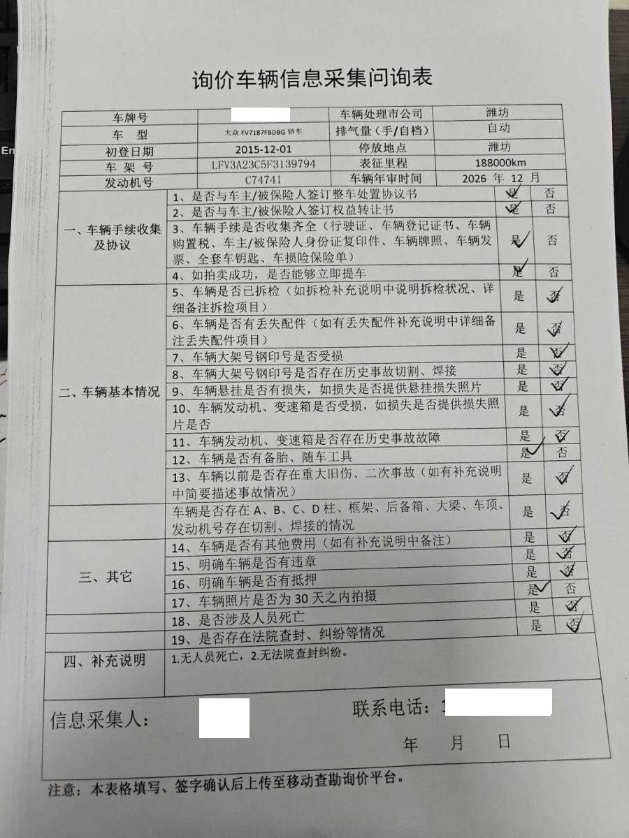 车架号是否受损 使用性质 非营运