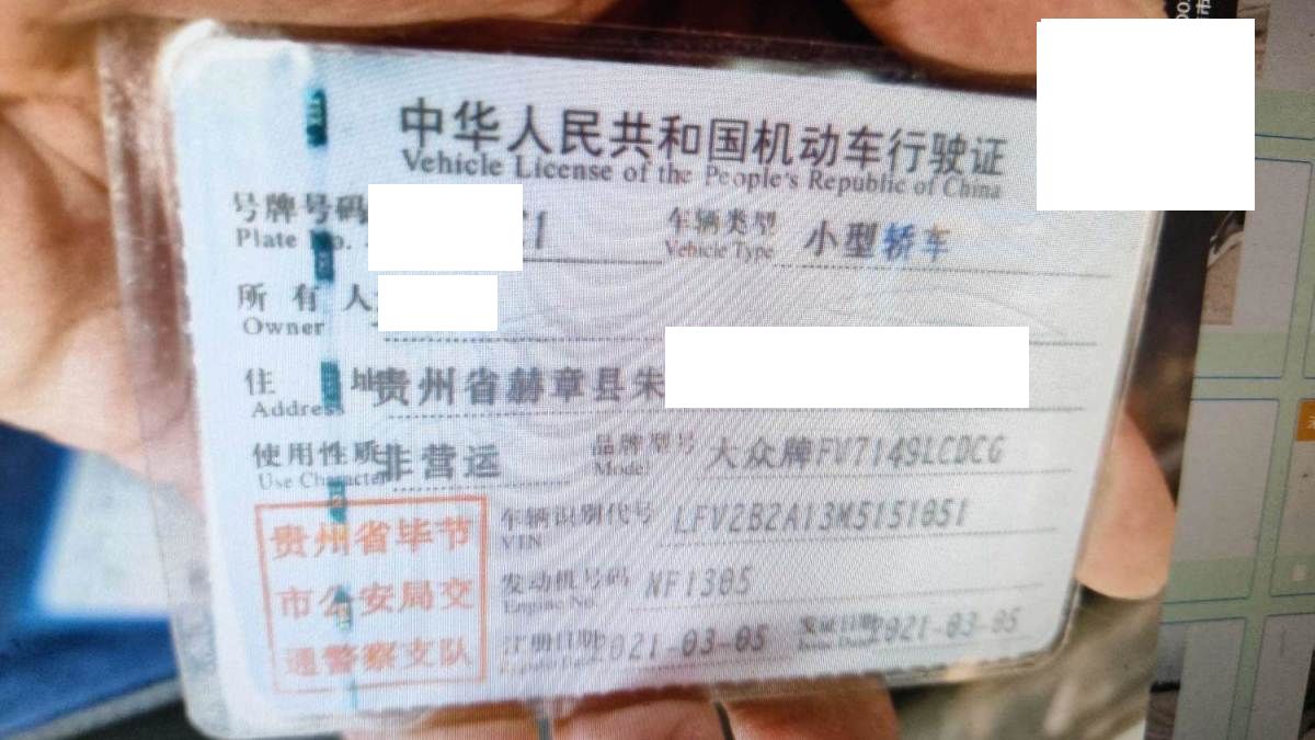 车辆归属地 贵州省毕节市 车辆停放仓库 广东省韶关市韶关市