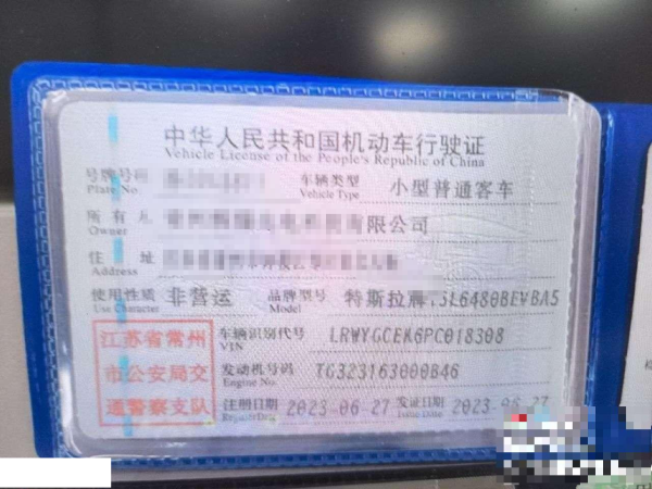 初次登记日期 2023-06-27 车辆名称 特斯拉 Model