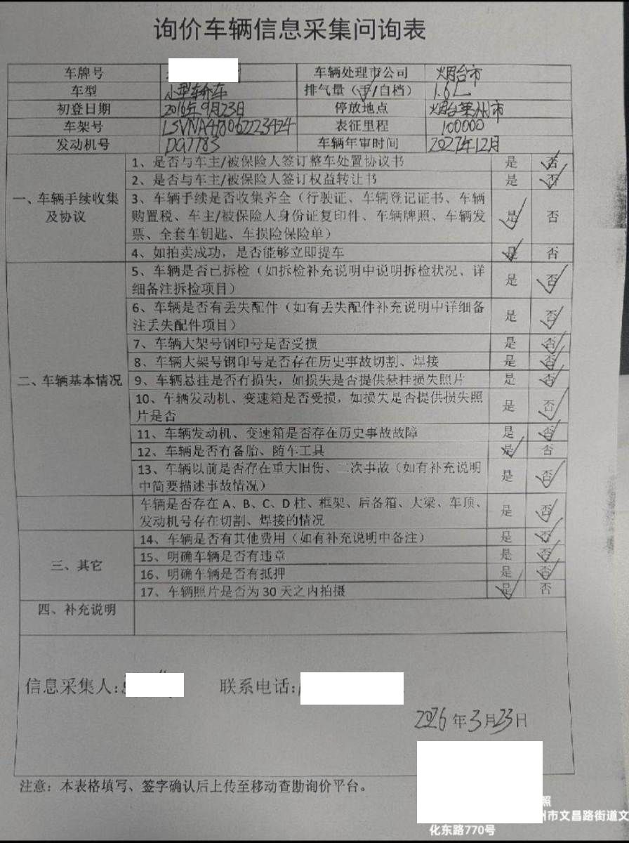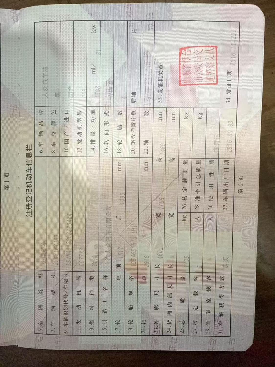 车辆归属地 山东省烟台市 车辆停放仓库 山东省莱州市