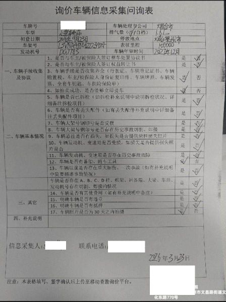 车架号是否受损 使用性质 非营运
