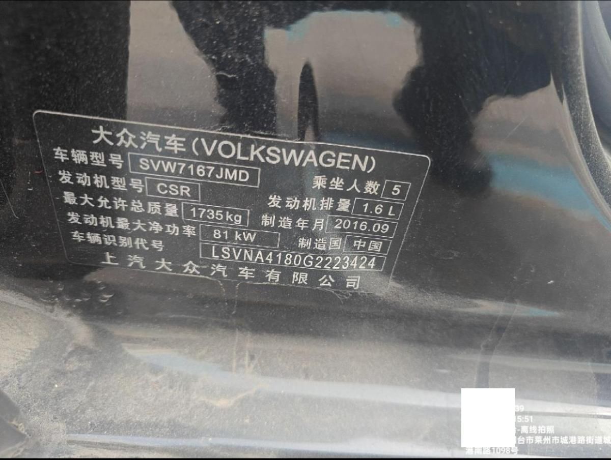 初次登记日期 2016-11-29 车辆名称 大众 朗逸