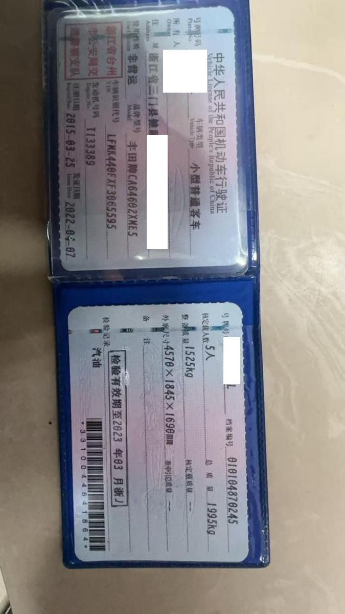 车牌号 浙****** 品牌 丰田