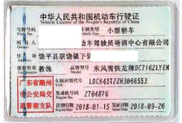 车辆归属地 广东省潮州 车辆停放仓库 广东省潮州市潮州市