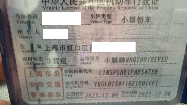 车牌号 沪****** 品牌 小鹏