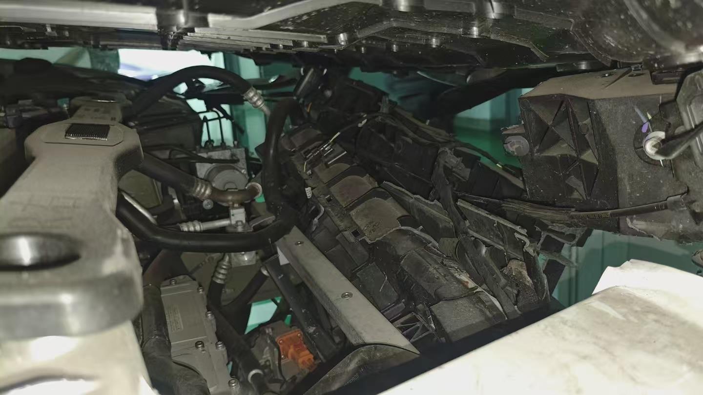 【二询备注:前电机挤压变形,目测有受损。后桥有伤,大电池有明显划痕伤】