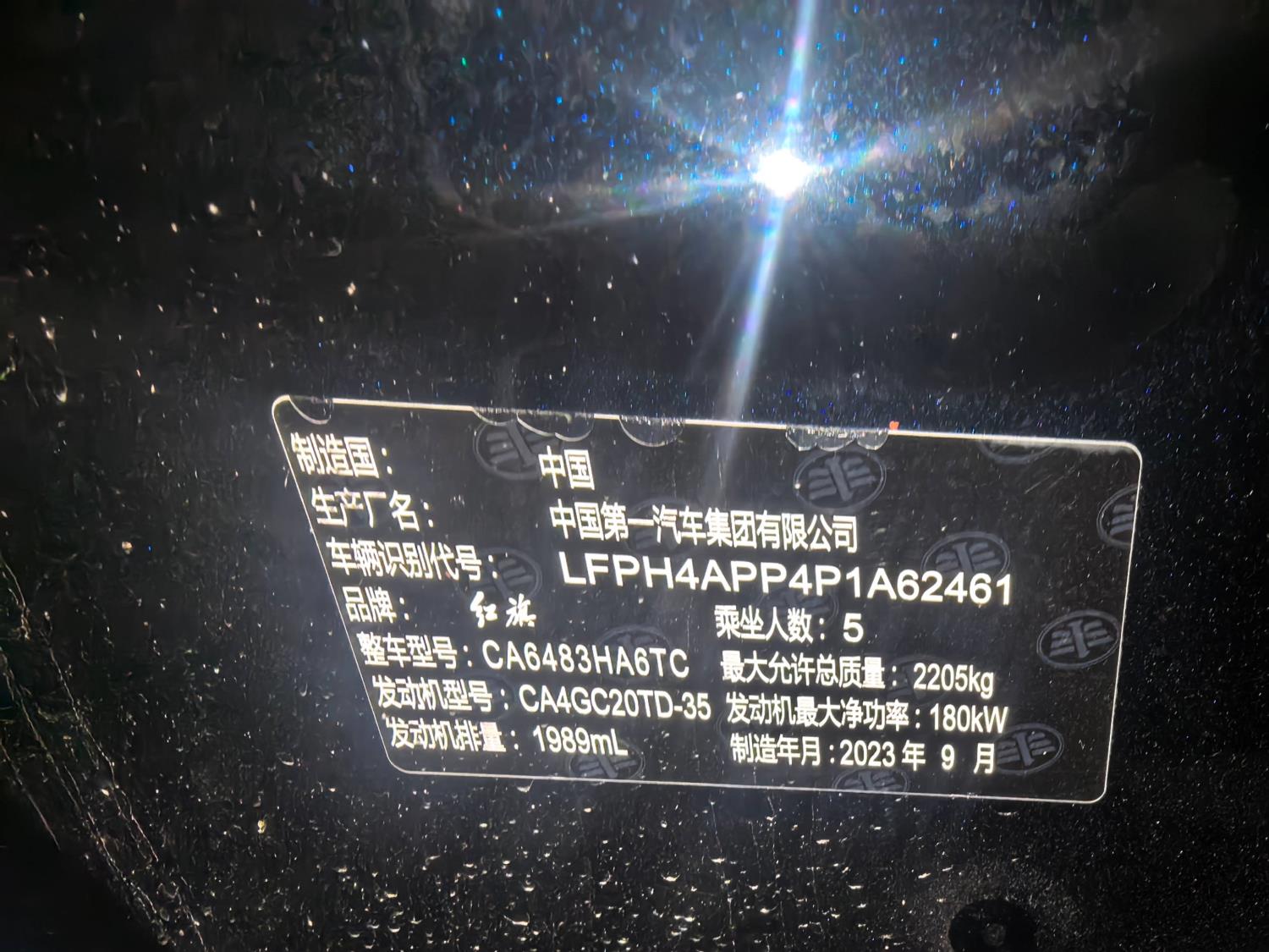 初次登记日期 2023-10-30 车辆名称 红旗HS5