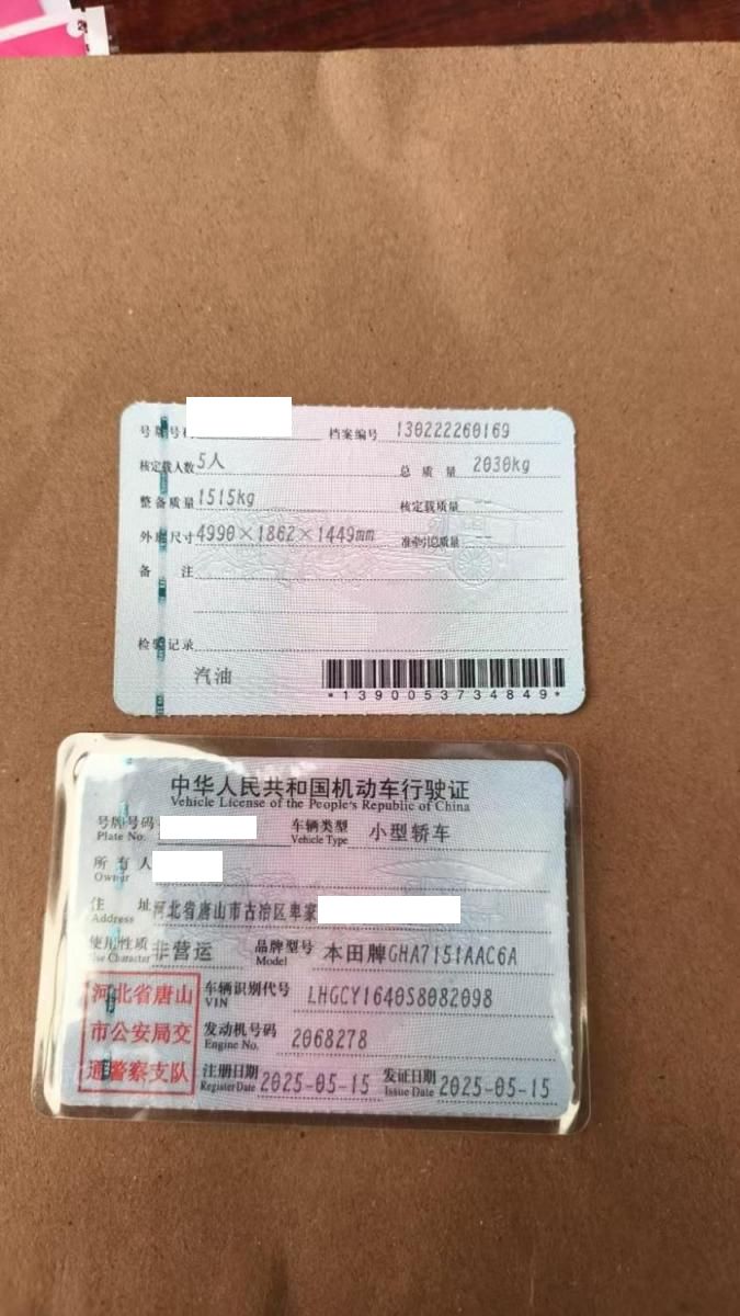 初次登记日期 2025-05-15 车辆名称 本田 雅阁