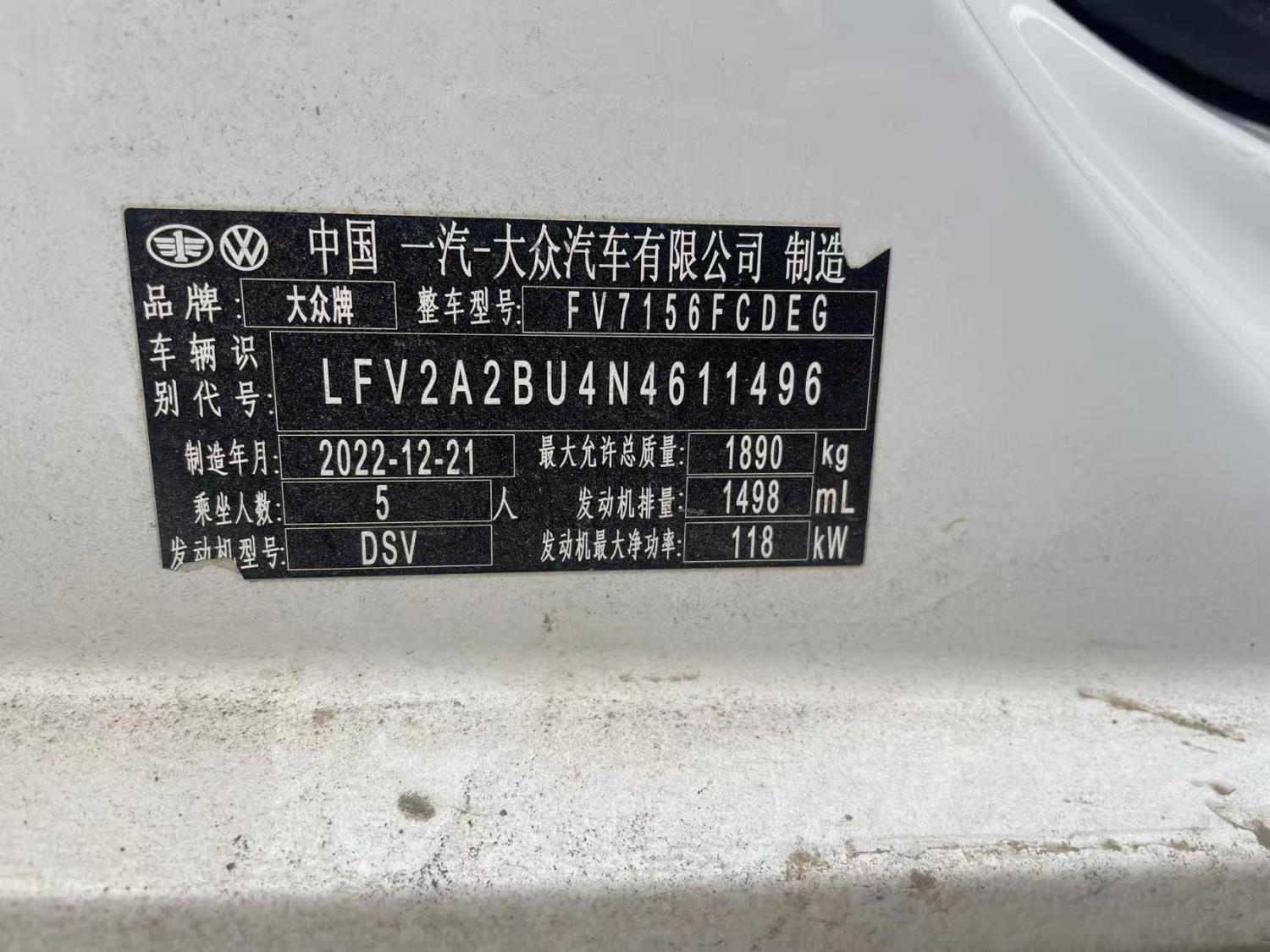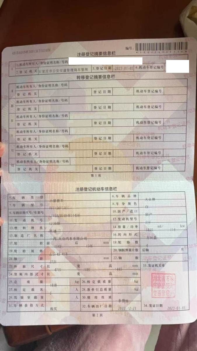 初次登记日期 2023-01-03 车辆名称 大众 速腾