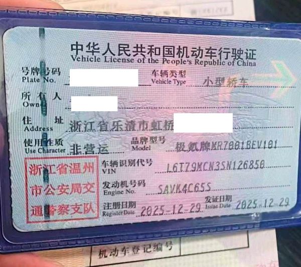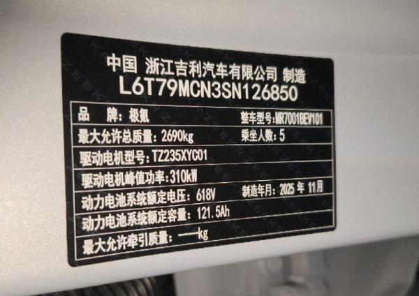 初次登记日期 2025-12-29 车辆名称 极氪牌