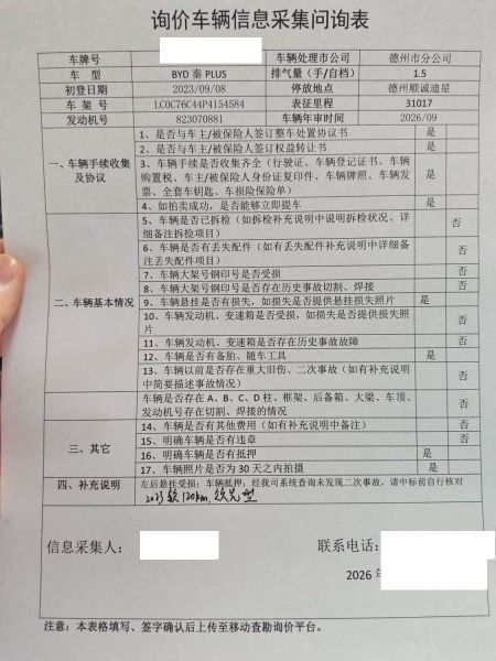 车架号是否受损 未知 使用性质 非营运