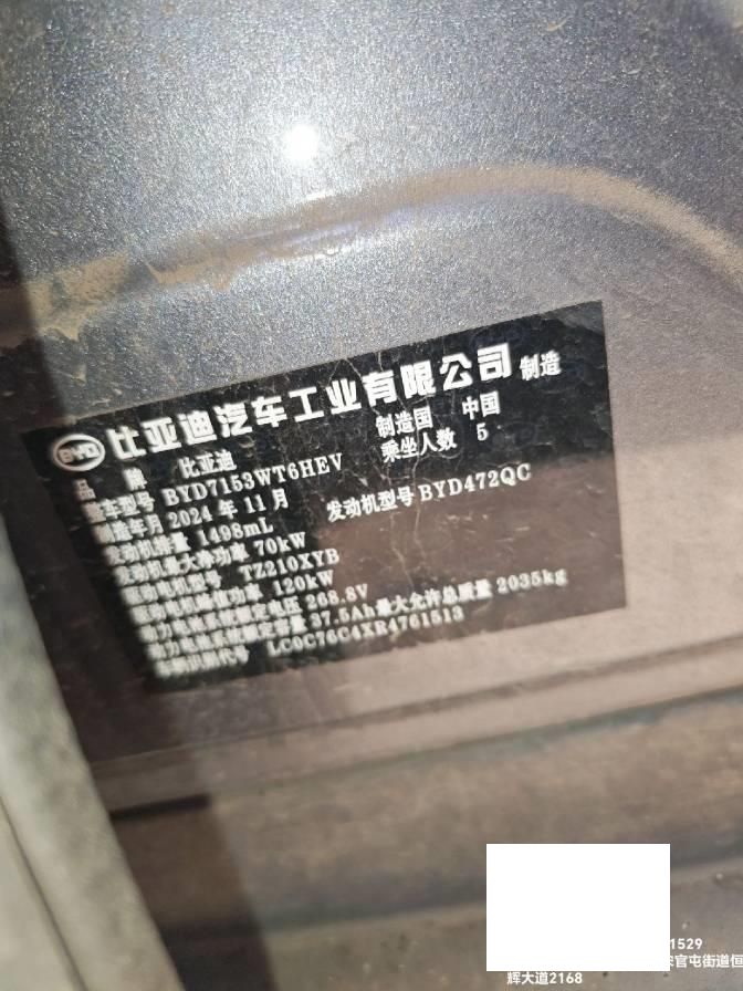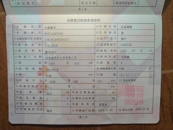 初次登记日期 2024-12-02 车辆名称 比亚迪 秦