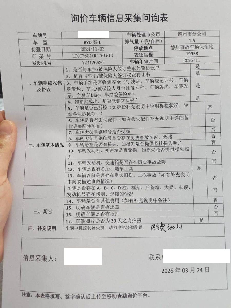 车架号是否受损 未知 使用性质 非营运