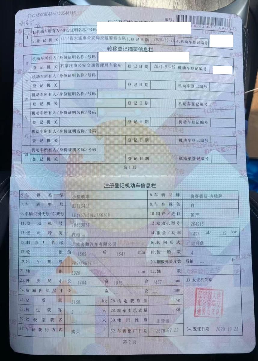 初次登记日期 2020-10-28 车辆名称 奔驰C级