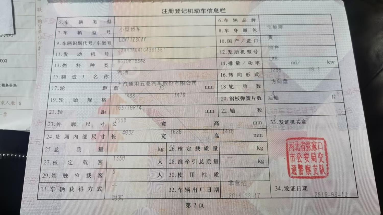 初次登记日期 2016-09-13 车辆名称 宝骏310