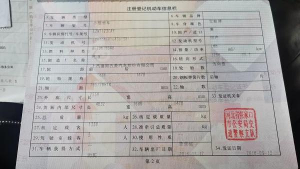 车架号是否受损 未知 使用性质 非营运
