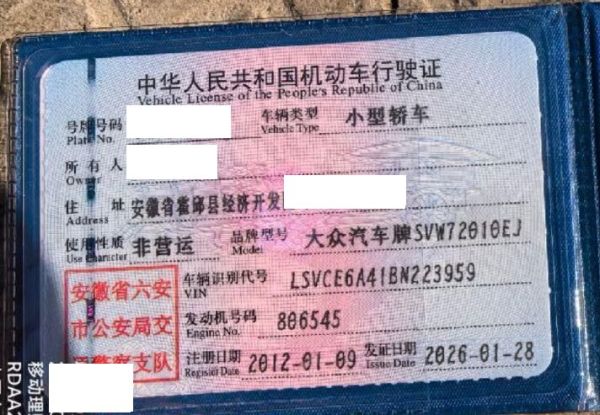车牌号 皖****** 品牌 大众